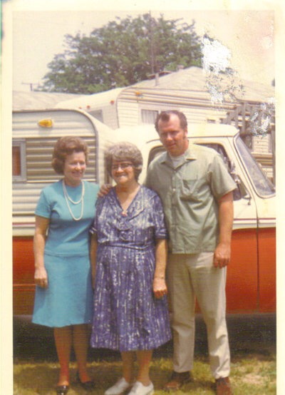 | Minnie with Her daughter Wilma Overby Dennis and her son Claude, I think, could be Leonard, lol. I think it's Claude. probably the late 1960s. |